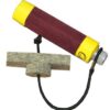 The suspension system is completely new. An elastic cord slips over the neck of the humidifier and is held in place by both tension and the humidifier cap. The cord is knotted at the end and extends through two pieces of felt (user-installed). One piece of felt is round and fits in the F hole. The other is rectangular and fits outside the double bass keeping the humidifier from falling into the instrument. A 10 cc syringe is included with the new suspension system with each OH-21 Double Bass Humidifier.